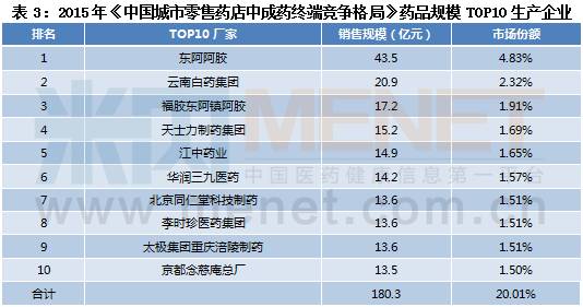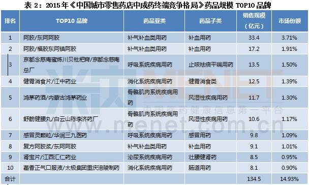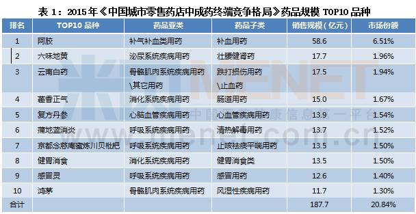 2015城市药店中成药902亿,阿胶一骑绝尘