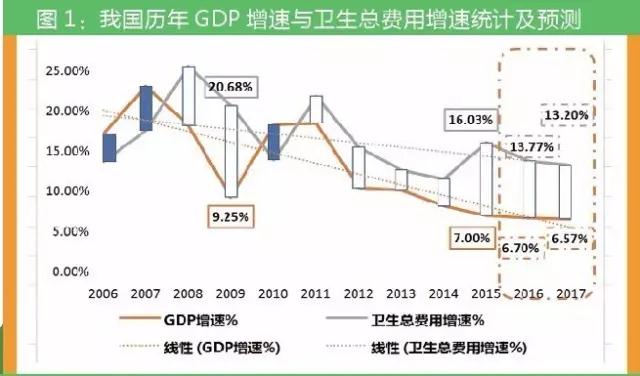 预测结果2017年GDP增速为6.57%,结合预测值我们不难想象如果这一趋势得不到控制,财政缺口将持续扩大,将会给政府财政、实体经济背上沉重负担。为此,促进医药卫生改革提高卫生费用使用效率,调节政府卫生投入结构,促进卫生事业健康有序转型发展,成为保障民生促进民族健康事业的重中之重。