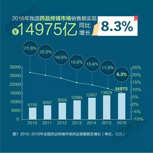 14975亿元!2016年我国药品市场蛋糕同比增长8.3%